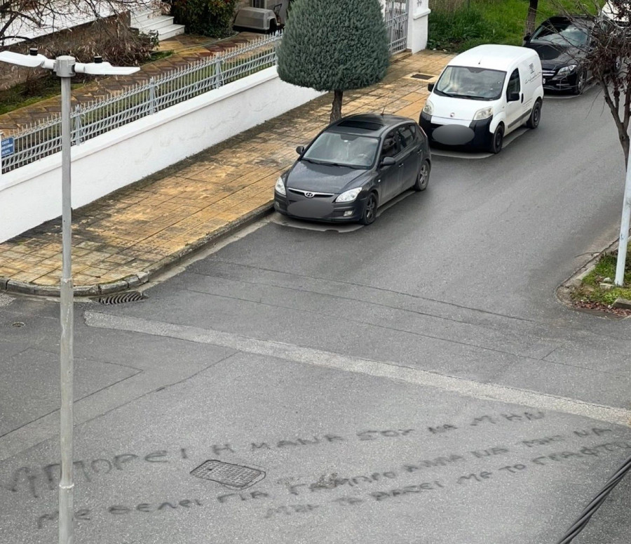 Συγκεκριμένα στο οδόστρωμα έγραψε: «Μπορεί να μη με θέλει η μάνα σου για γαμπρό αλλά δεν μπορεί να αλλάξει το γραφτό».