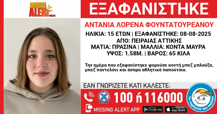 Συναγερμός σήμανε στις 8 Αυγούστου για εξαφάνιση 15χρονης από την περιοχή του Πειραιά.