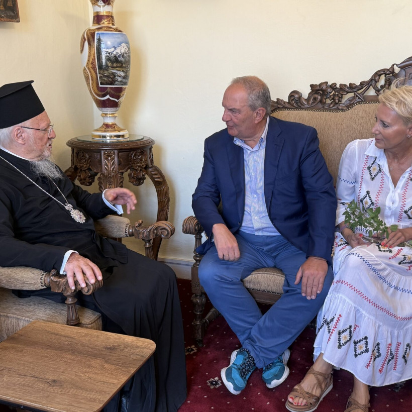 Συνάντηση με τον Οικουμενικό Πατριάρχη Βαρθολομαίο είχαν το Σάββατο, 16 Αυγούστου 2025, προσωπικότητες της πολιτικής, οικονομικής και κοινωνικής ζωής της Ελλάδος, που επισκέφθηκαν ιδιωτικώς την Ίμβρο με πρωτοβουλία του Γεωργίου Προκοπίου, εφοπλιστού, Αντιπροέδρου της Αδελφότητος Οφφικιαλίων της Μ.τ.Χ.Ε. «Παναγία Παμμακάριστος».