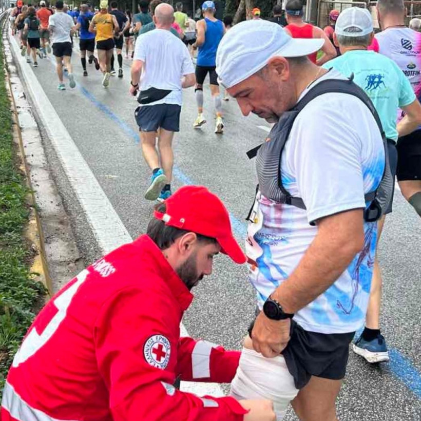 Ο Ελληνικός Ερυθρός Σταυρός (Ε.Ε.Σ.), για άλλη μια χρονιά, έδωσε δυναμικά το παρόν στον 42ο Αυθεντικό Μαραθώνιο Αθήνας με 230 εθελοντές Σαμαρείτες – Διασώστες, εθελοντές Υγείας και νοσηλευτικό προσωπικό, το Εθνικό Κέντρο Συντονισμού & Διαχείρισης Κρίσεων του Ε.Ε.Σ. και διασωστικά οχήματα, για την υγειονομική κάλυψη σε όλο το μήκος της ιστορικής διαδρομής.