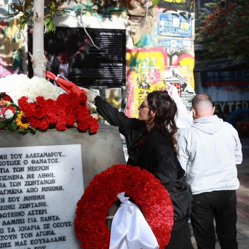 Επέτειος Γρηγορόπουλου: Πολίτες αφήνουν λουλούδια στο μνημείο του Αλέξη στα Εξάρχεια – Δείτε εικόνες