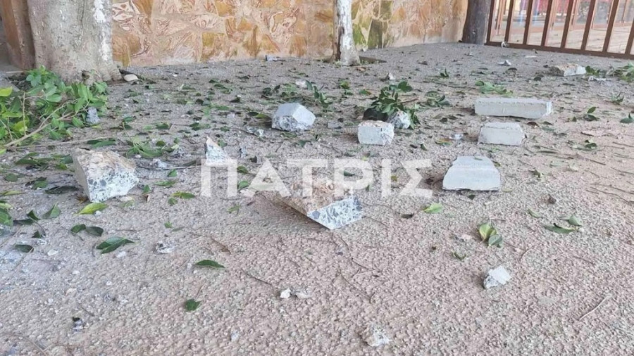 Τα μεγάλα κομμάτια μπετόν προσγειώθηκαν στην πλατεία, σε δέντρα αλλά και στον προαύλιο χώρο καφετέριας που βρίσκεται κάτω από την γέφυρα.