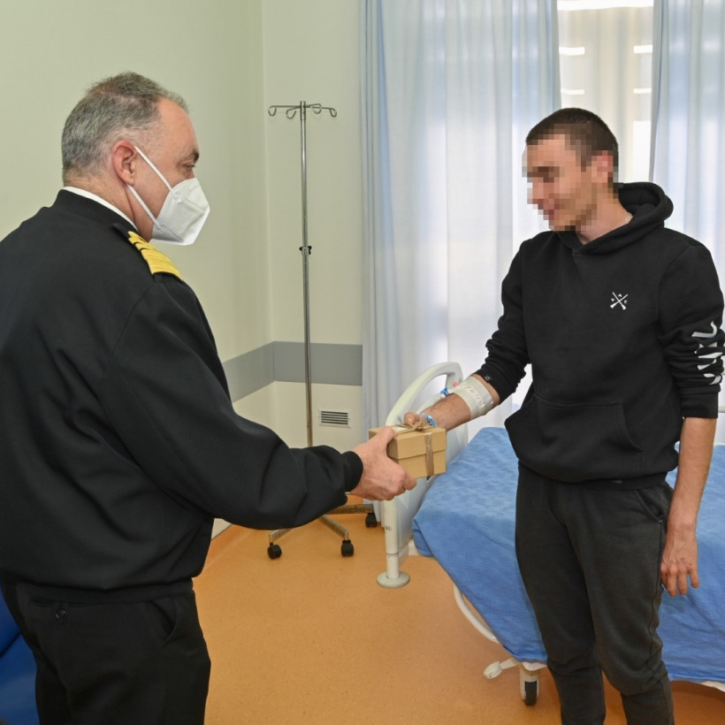 Ο αντιναύαρχος Δημήτριος - Ελευθέριος Κατάρας αντάλλαξε ευχές με ασθενείς του νοσοκομείου και το ιατρικό και νοσηλευτικό προσωπικό, συγχαίροντάς τους για το σημαντικό έργο που επιτελούν