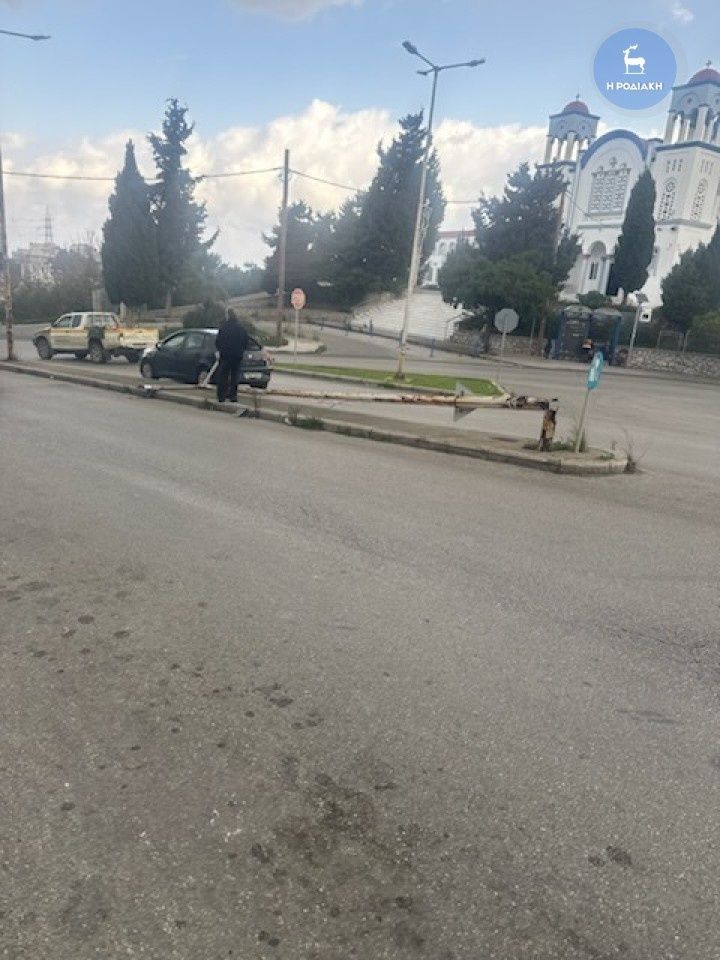 Σύμφωνα με την rodiaki.gr η κολώνα φωτισμού υποχώρησε από τους ισχυρούς ανέμους που έπνεαν στο νησί, όμως για καλή τύχη του οδηγού η κολώνα έπεσε στο πίσω μέρος του αυτοκινήτου, διαλύοντας το τζάμι και προκαλώντας ζημιές, χωρίς ωστόσο να τον τραυματίσει.