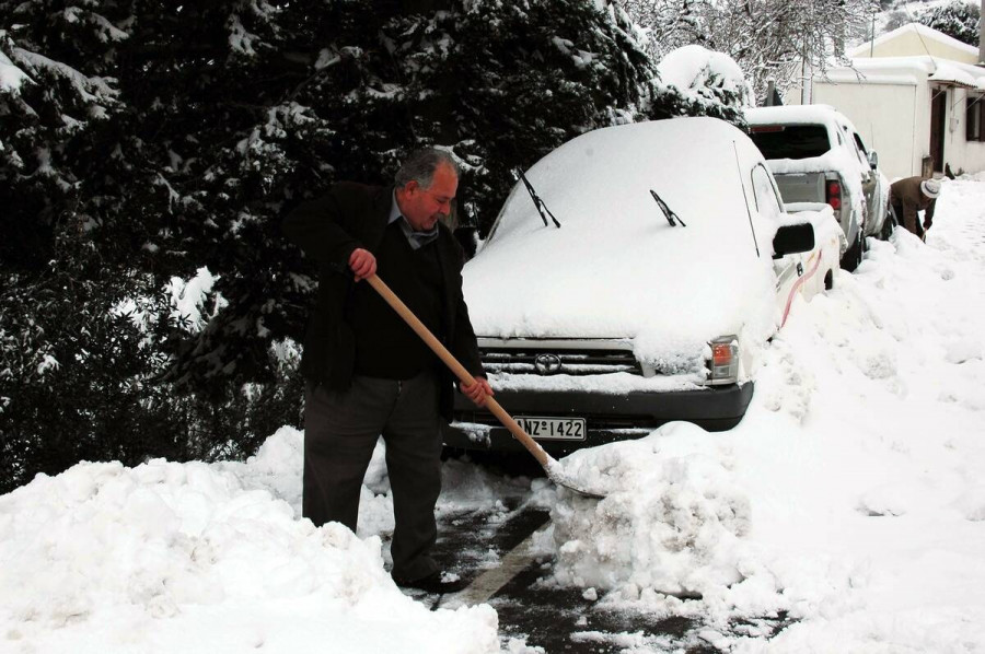 Οι κάτοικοι πολλών περιοχών του Ηρακλείου είδαν τους δρόμους, τα μπαλκόνια και τα αυτοκίνητα καλυμμένα από ένα λευκό πέπλο χιονιού.