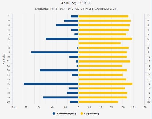 Εμφανίσεις και καθυστερήσεις τυχερών αριθμών Τζόκερ - Προγνωστικά