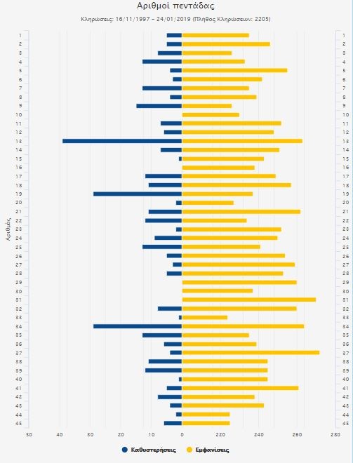 Εμφανίσεις και καθυστερήσεις τυχερών αριθμών Τζόκερ - Προγνωστικά