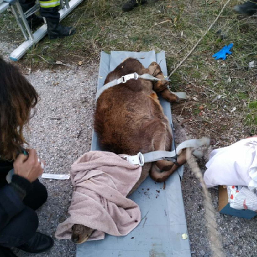 Για τον απεγκλωβισμό του ελαφιού επιχείρησαν εννέα πυροσβέστες με τρία οχήματα.