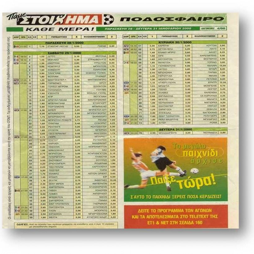 Το Πάμε Στοίχημα έχει σήμερα γενέθλια. Γιορτάζει τα 19 του χρόνια. Την Παρασκευή 28 Ιανουαρίου 2000 κυκλοφόρησε στα πρακτορεία του ΟΠΑΠ το πρώτο κουπόνι με 75 αγώνες ποδοσφαίρου, που παίζονταν σε τετράδες. Οι παίκτες είχαν μόλις μία στοιχηματική επιλογή. Μπορούσαν να ποντάρουν μόνο στο σημείο του αγώνα, τον «άσο», το «Χ» ή το «διπλό».