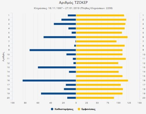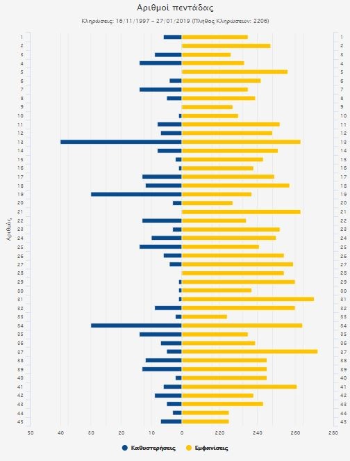 Εμφανίσεις και καθυστερήσεις τυχερών αριθμών Τζόκερ - Προγνωστικά
