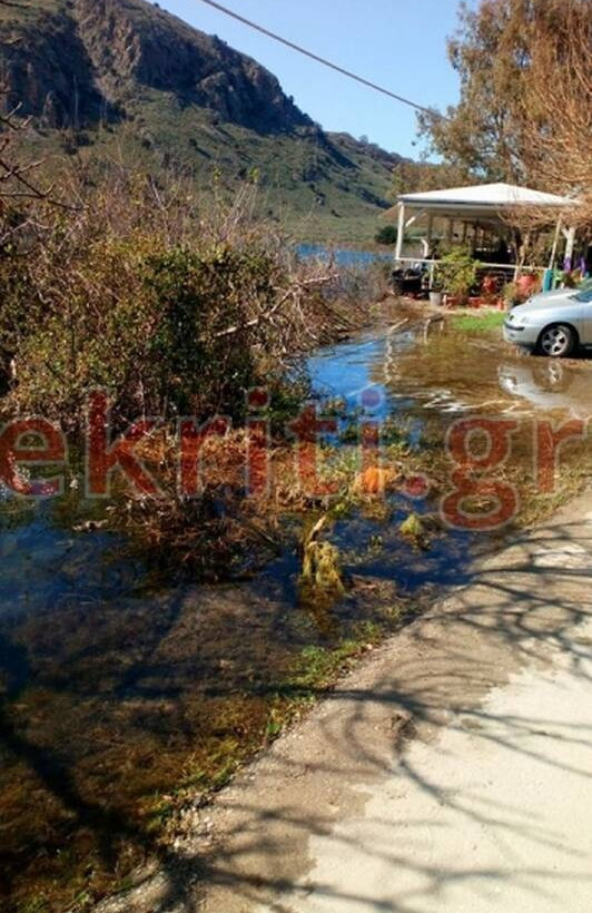 Η στάθμη της λίμνης Κουρνά στα Χανιά ανέβηκε όπως έγραψε το ekriti, ωστόσο, σχεδόν δύο εβδομάδες μετά, τα νερά καλύπτουν το δρόμο και τους εξωτερικούς χώρους των καταστημάτων.