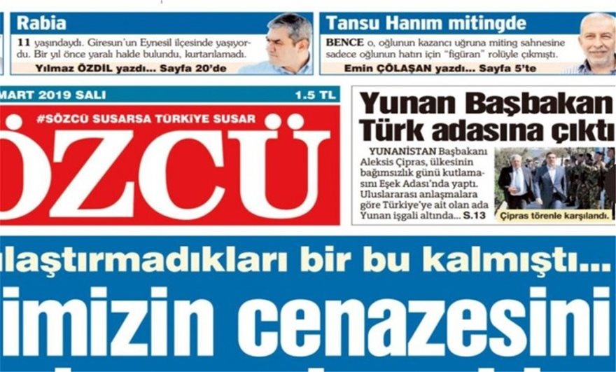 Το πιο περίεργο είναι πως η εν λόγω εφημερίδα κάνει αντιπολίτευση (όσο μπορεί να ευσταθεί ο όρος αυτός στην Τουρκία του χαλίφη Ερντογάν), οπότε εύκολα μπορεί να καταλάβει κανείς τον φανατισμό στην απέναντι πλευρά του Αιγαίου.