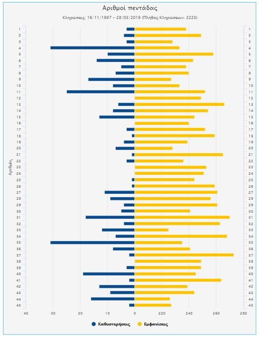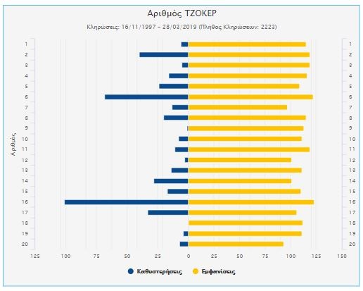 Εμφανίσεις και καθυστερήσεις τυχερών αριθμών Τζόκερ - Προγνωστικά