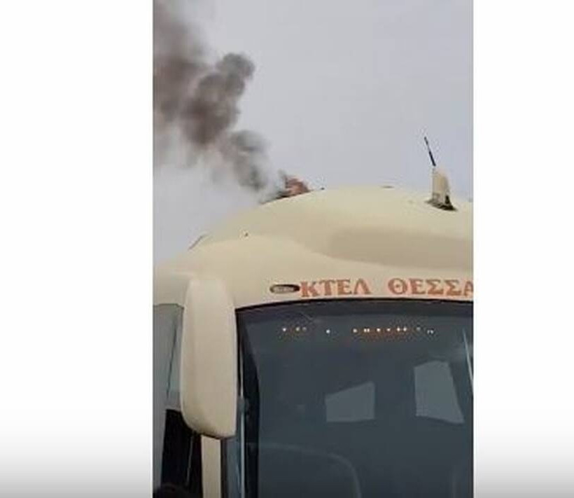 Φωτιά στην εξωτερική μονάδα του κλιματιστικού στην εξωτερική οροφή υπεραστικού λεωφορείου του ΚΤΕΛ Θεσσαλονίκης εκδηλώθηκε, το μεσημέρι, κατά την κίνηση του στη εθνική οδό Αθηνών - Θεσσαλονίκης, στο ύψος της Κατερίνης.