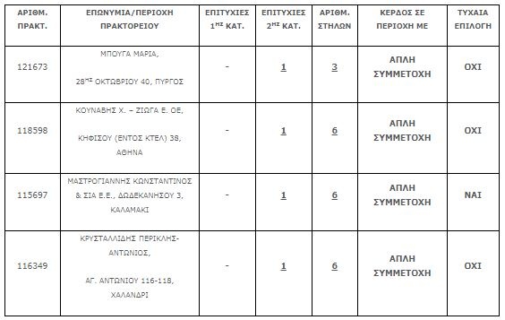 Σημειώνεται ότι στην δεύτερη κατηγορία (5αρια) του τυχερού παιχνιδιού του ΟΠΑΠ βρέθηκαν τέσσερα επιτυχημένα δελτία που κερδίζουν το ποσό των 20.177.81 ευρώ!