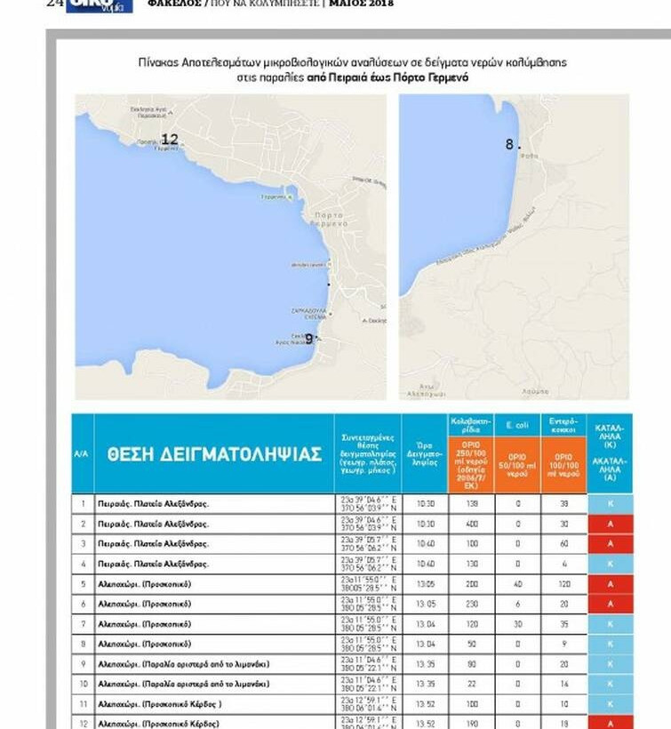 Τα ευρήματα ήταν σοκαριστικά, καθώς τα δείγματα έδειξαν ότι πολυσύχναστα μέρη είναι ακατάλληλα για κολύμβηση.