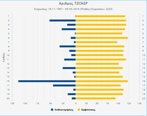 Εμφανίσεις και καθυστερήσεις τυχερών αριθμών Τζόκερ - Προγνωστικά