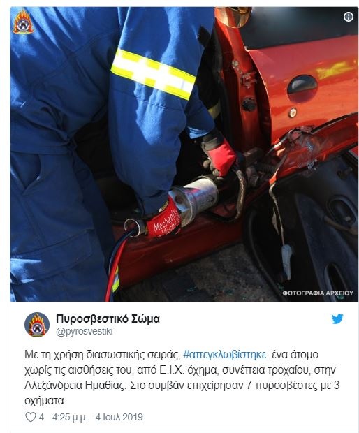 Το τροχαίο έγινε στις 13.30 στο χωριό Παλαιοχώρι του δήμου Αλεξάνδρειας, όταν για άγνωστο μέχρι στιγμής λόγο, τρία οχήματα συγκρούστηκαν πλαγιομετωπικά μεταξύ τους, με αποτέλεσμα τον θανάσιμο τραυματισμό του 35χρονου οδηγού ενός εκ των οχημάτων.