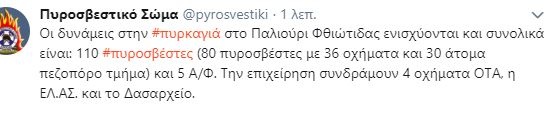 Παράλληλα ενισχύθηκαν οι πυροσβεστικές δυνάμεις. Συνολικά αυτή την ώρα στην περιοχή βρίσκονται δυνάμεις από όλη την Κεντρική Ελλάδα, ήτοι 80 πυροσβέστες με 36 οχήματα και 30 άτομα πεζοπόρα τμήματα, 5 αεροσκάφη, ενώ συνδράμουν υδροφόρες των δήμων και της περιφέρειας, καθώς και χωματουργικά μηχανήματα.