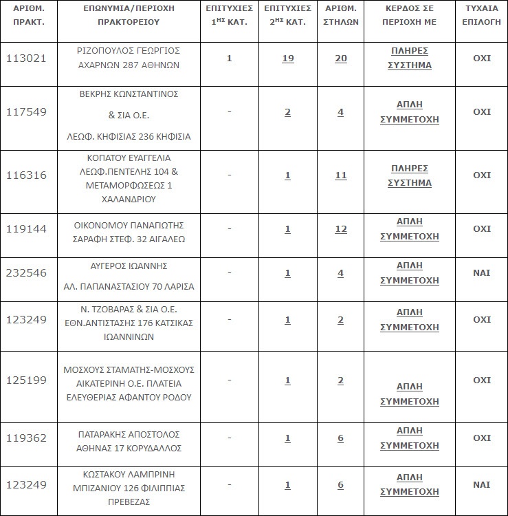 Παράλληλα, βρέθηκαν και 29 νικητές στη δεύτερη κύρια κατηγορία κερδών (5άρια) οι οποίοι κερδίζουν από 5.523,84 ευρώ ο καθένας.