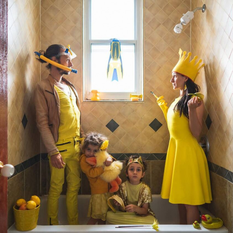 Μέσα από το ευφάνταστο αυτό concpet είχαν την ευκαιρία να ταξιδέψουν, έστω και νοητά, σε καταπράσινες ζούγκλες, στη μακρινή Κίνα και άλλες χώρες της Ανατολής. Η εμπειρία του Jean Manuel στη φωτογραφία σίγουρα έπαιξε το ρόλο της. Σε κάθε φωτογράφιση αξιοποιούσαν ένα βασικό χρώμα και μέσα σε λίγες εβδομάδες η οικογένεια δημιούργησε ένα απίθανο ημερολόγιο καραντίνας.