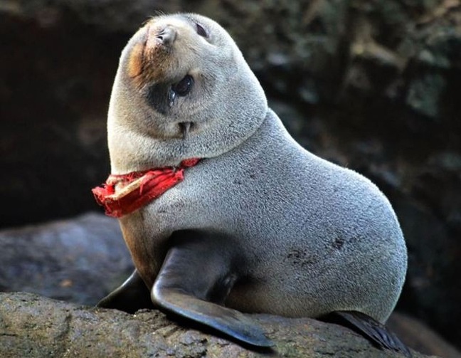 Ένα απίστευτο περιστατικό παραλίγο να κοστίσει τη ζωή μιας μικρής φώκιας, η οποία εντοπίστηκε στις νότιες ακτές της Νέας Ζηλανδίας με ένα... g-string στο λαιμό!