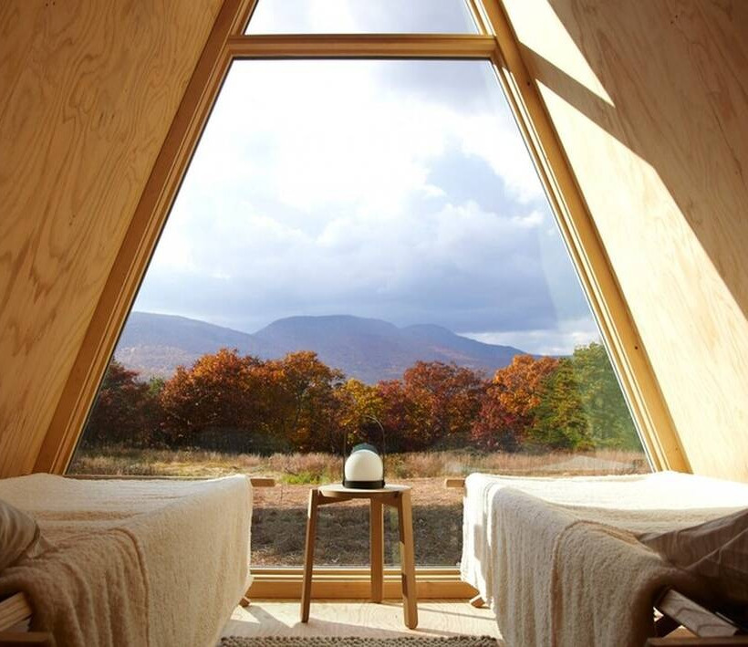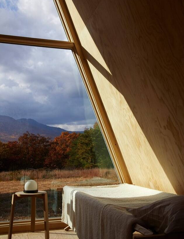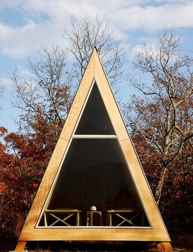 Πρόκειται για ένα Kit που είναι έτοιμο προς συναρμολόγηση μέσα σε λίγες μόνο ημέρες. Το Den Cabin Kit των 10,68 τετραγωνικών μέτρων μοιάζει με τρίγωνο και αποτελείται από ξύλινες εσωτερικές και εξωτερικές επιφάνειες. Αυτό που του χαρίζει την απόλυτη επαφή με τη φύση είναι το τεράστιο ξύλινο παράθυρο, ένα χαρακτηριστικό που κάνει αυτό το υπέροχο σπιτάκι τον ιδανικό ξενώνα για ηρεμία, χαλάρωση αλλά και μελέτη.
