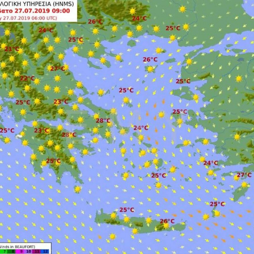 ΚΥΚΛΑΔΕΣ, ΚΡΗΤΗ: Άνεμοι βόρειοι βορειοδυτικοί 3 με 5 μποφόρ. Η θερμοκρασία από 23 έως 30 και στην Κρήτη τοπικά έως 33 βαθμούς Κελσίου.