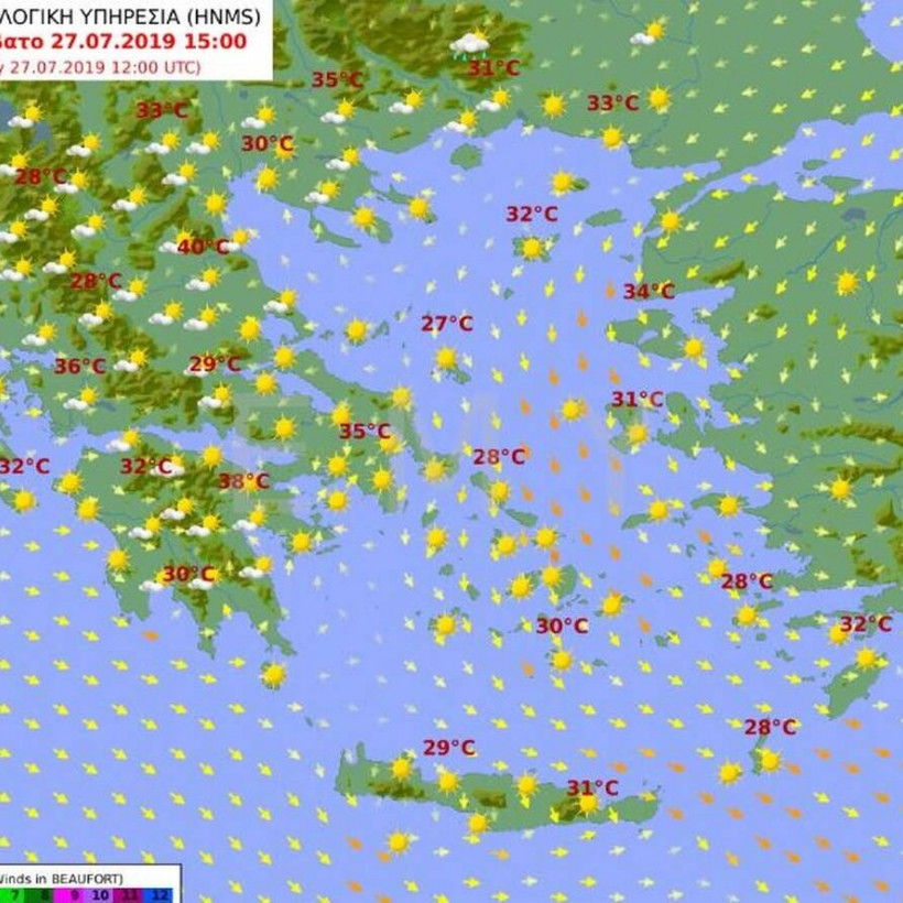 ΝΗΣΙΑ ΑΝΑΤΟΛΙΚΟΥ ΑΙΓΑΙΟΥ, ΔΩΔΕΚΑΝΗΣΑ: Ανεμοι βόρειοι βορειοδυτικοί 4 με 5 μποφόρ. Η θερμοκρασία από 23 έως 34 βαθμούς Κελσίου. Στα βόρεια η μέγιστη 2 με 3 βαθμούς χαμηλότερη.