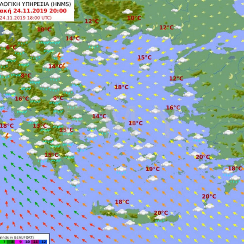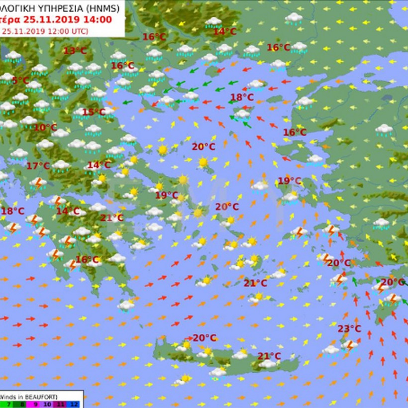 Ο καιρός τη Δευτέρα, 25 Νοεμβρίου