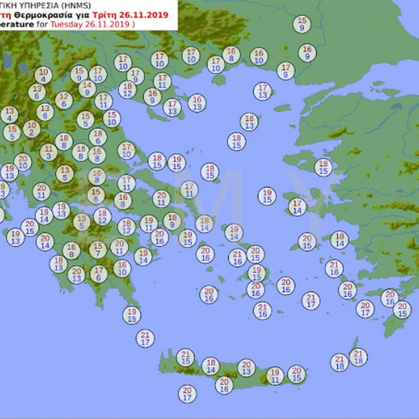 Ο καιρός την Τρίτη, 26 Νοεμβρίου
