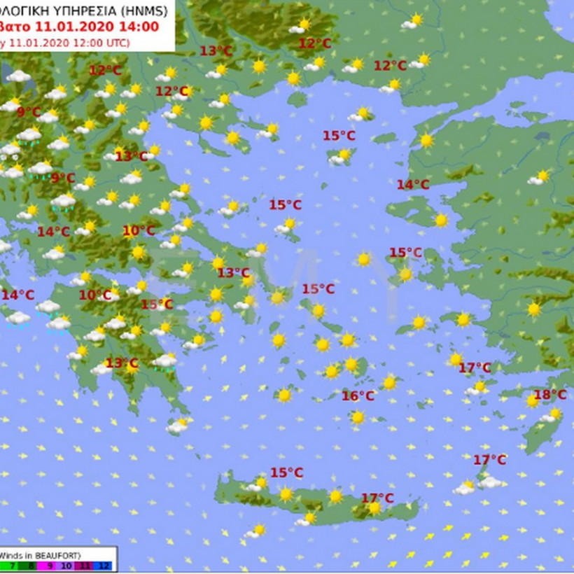 Άνεμοι: Στα δυτικά από ανατολικές διευθύνσεις 3 με 5 μποφόρ, στα ανατολικά από βόρειες διευθύνσεις 3 με 5 και στο κεντρικό και βόρειο Αιγαίο έως 6 μποφόρ.