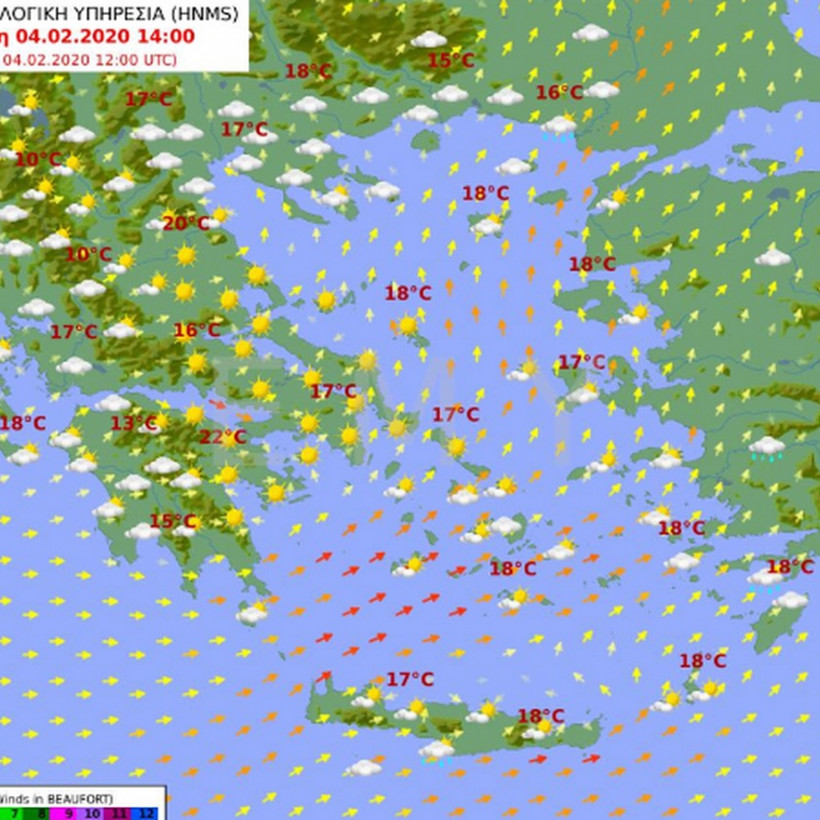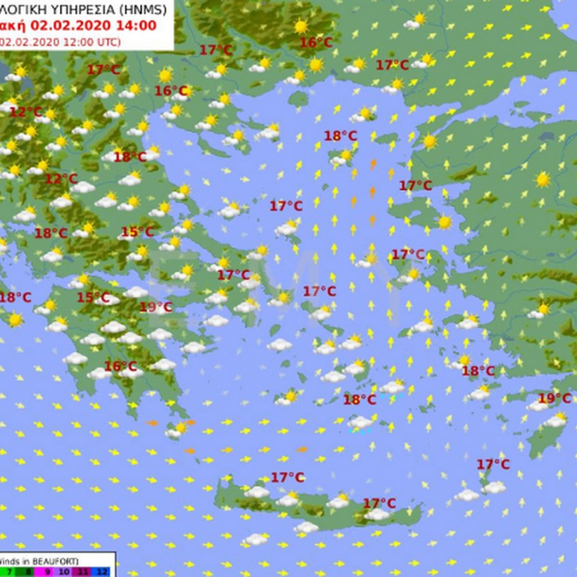 Οι άνεμοι πνέουν δυτικοί νοτιοδυτικοί 3 με 5 μποφόρ με τη θερμοκρασία να κυμαίνεται σε υψηλά για την εποχή επίπεδα.
