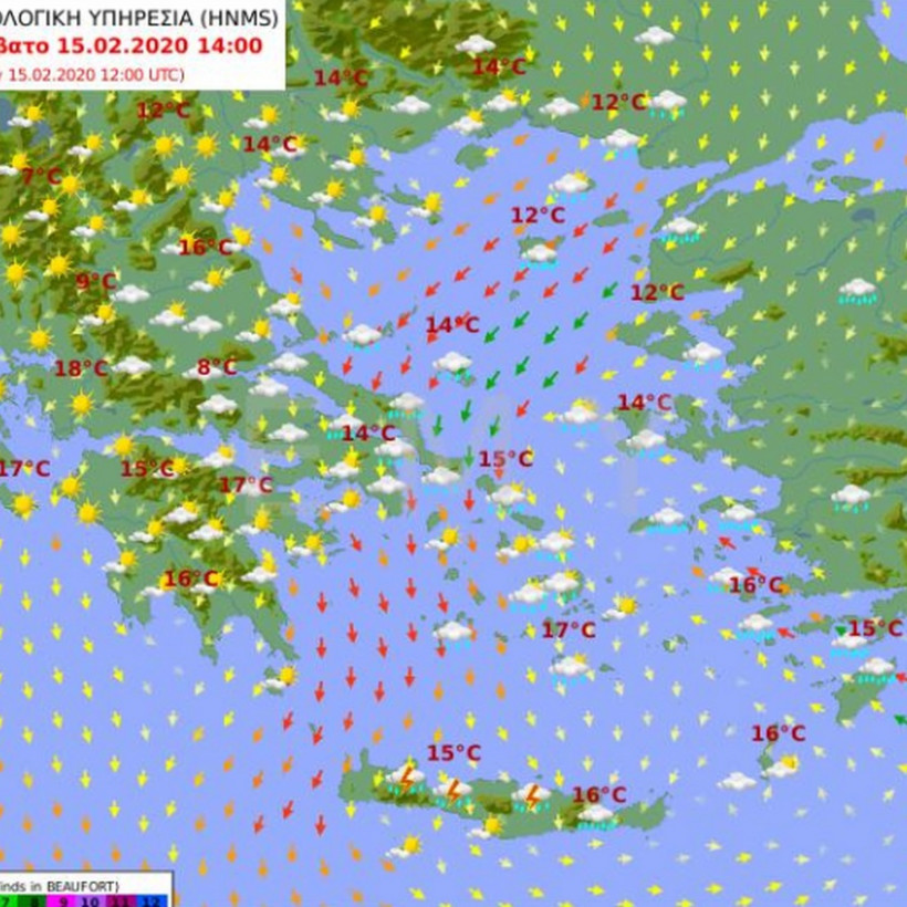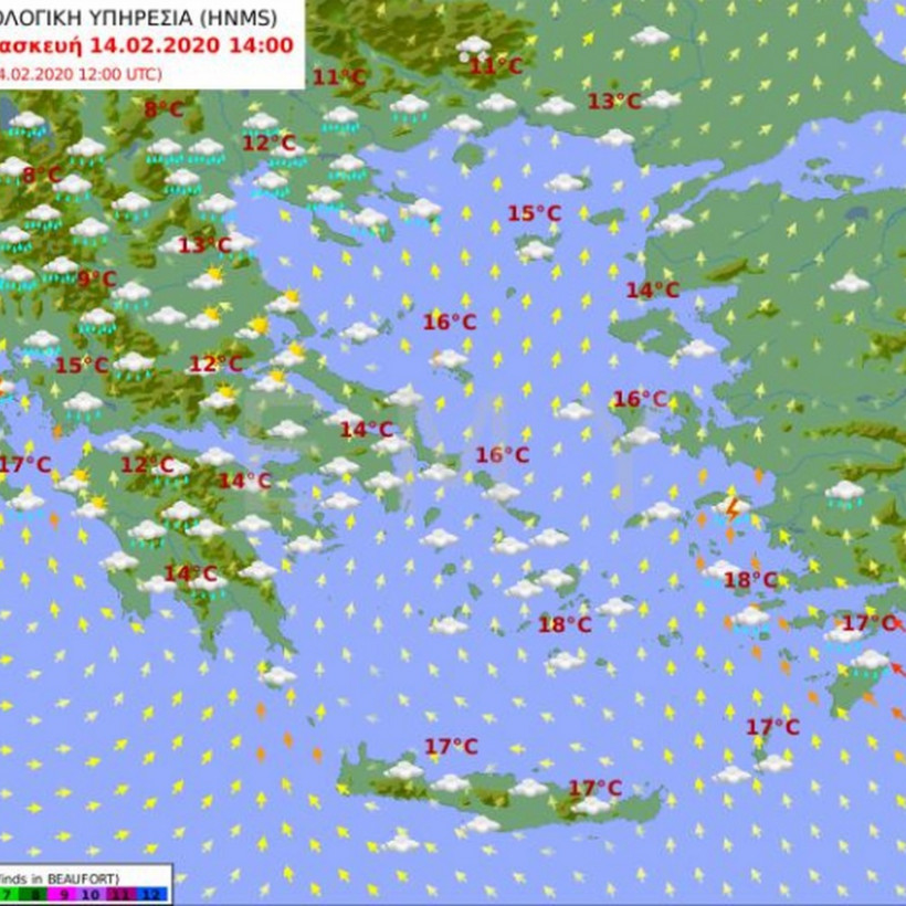 Θερμοκρασία: Από 9 έως 16 βαθμούς Κελσίου και στη βόρεια Κρήτη η μέγιστη θα είναι 2 με 3 βαθμούς υψηλότερη.