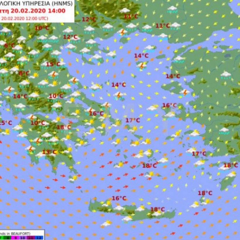 Άνεμοι: Μεταβλητοί 3 με 4 μποφόρ, από το μεσημέρι νότιοι 3 με 5 και στα νότια δυτικοί νοτιοδυτικοί από το βράδυ τοπικά 6 μποφόρ.