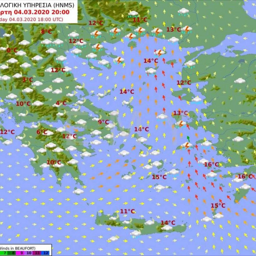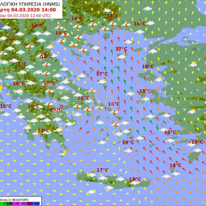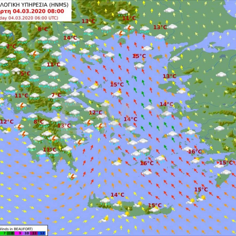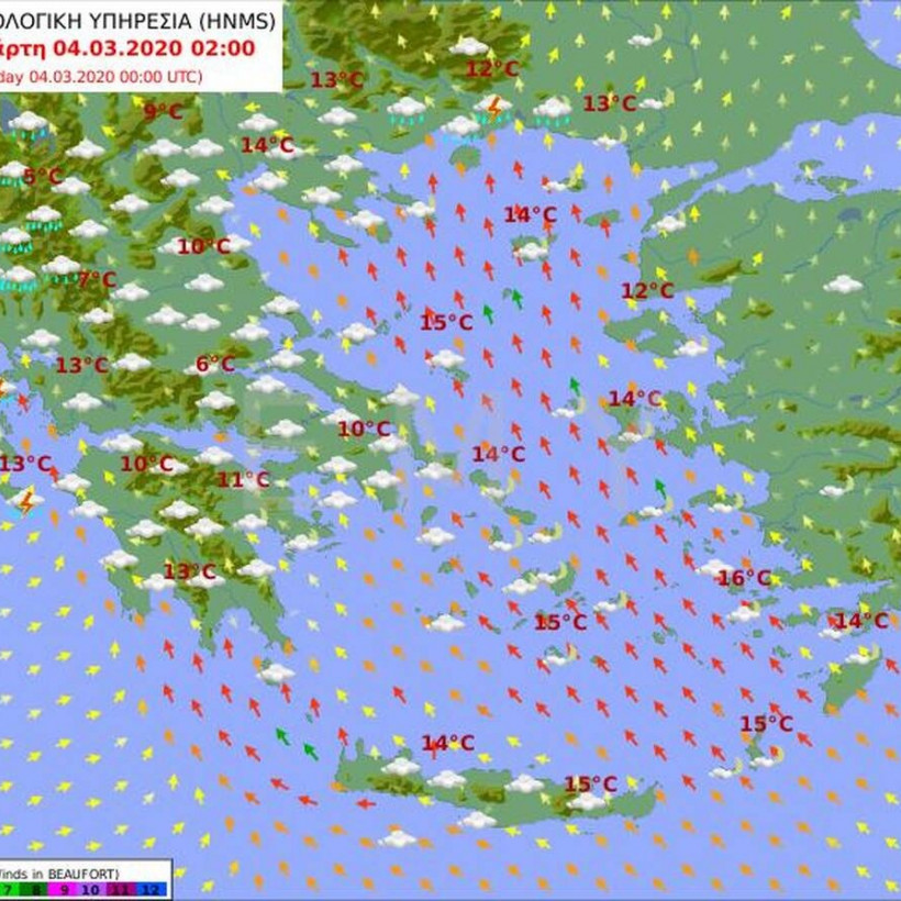 Την Τετάρτη (4/3) οι άνεμοι στο Αιγαίο θα φθάσουν τοπικά 9 μποφόρ, ενώ στο Ιόνιο θα εξασθενήσουν.