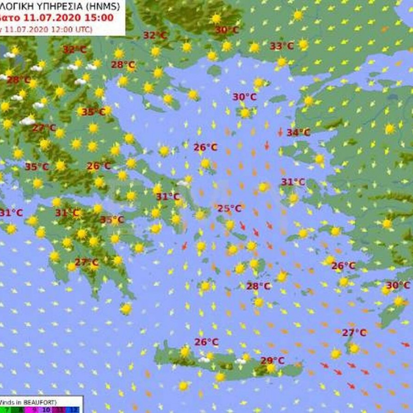 Θερμοκρασία: Από 19 έως 35 βαθμούς Κελσίου. Στην Ήπειρο η ελάχιστη 2 με 3 βαθμούς χαμηλότερη.