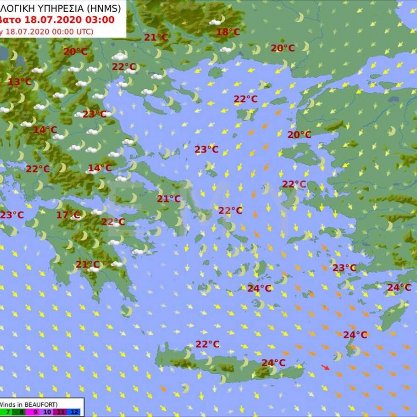 Άνεμοι: Μεταβλητοί 3 με 4 και στα ανατολικά βόρειοι βορειοανατολικοί 4 με 5 μποφόρ.