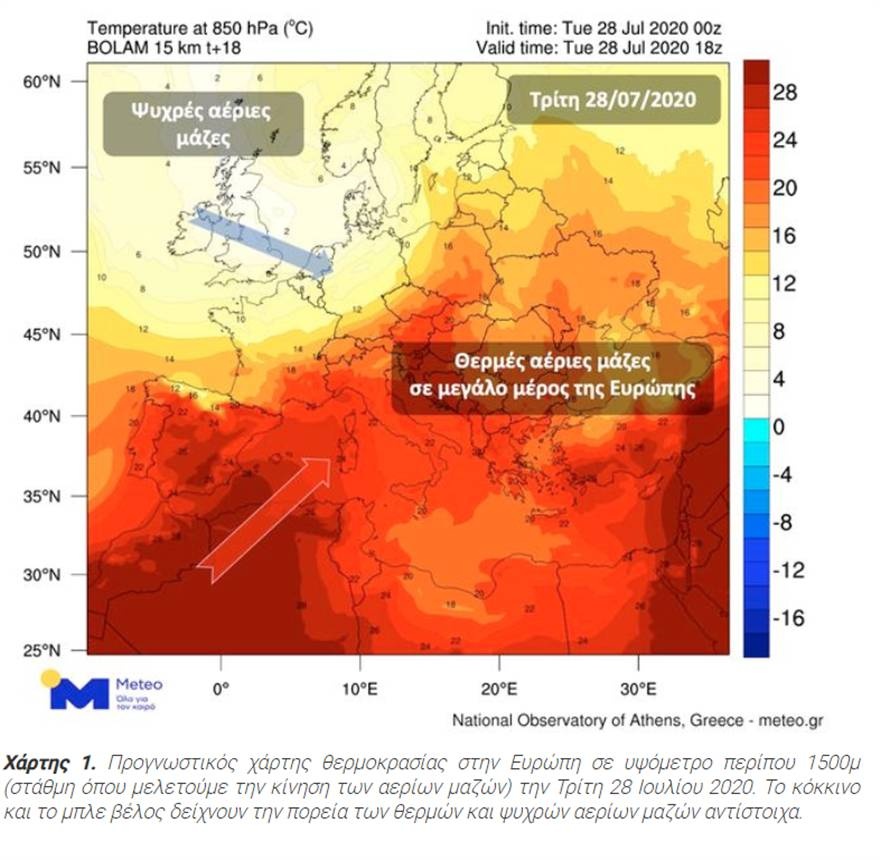 Αντίθετα στη βορειοδυτική Ευρώπη, ψυχρές αέριες μάζες κινούνται γρήγορα ανατολικά και θα οδηγήσουν σε έντονα καιρικά φαινόμενα σήμερα Τετάρτη 29 Ιουλίου.
