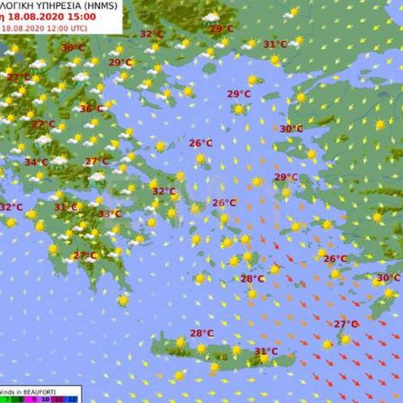 Θερμοκρασία: Από 23 ως 30 και στη νότια Κρήτη έως 34 βαθμούς Κελσίου.