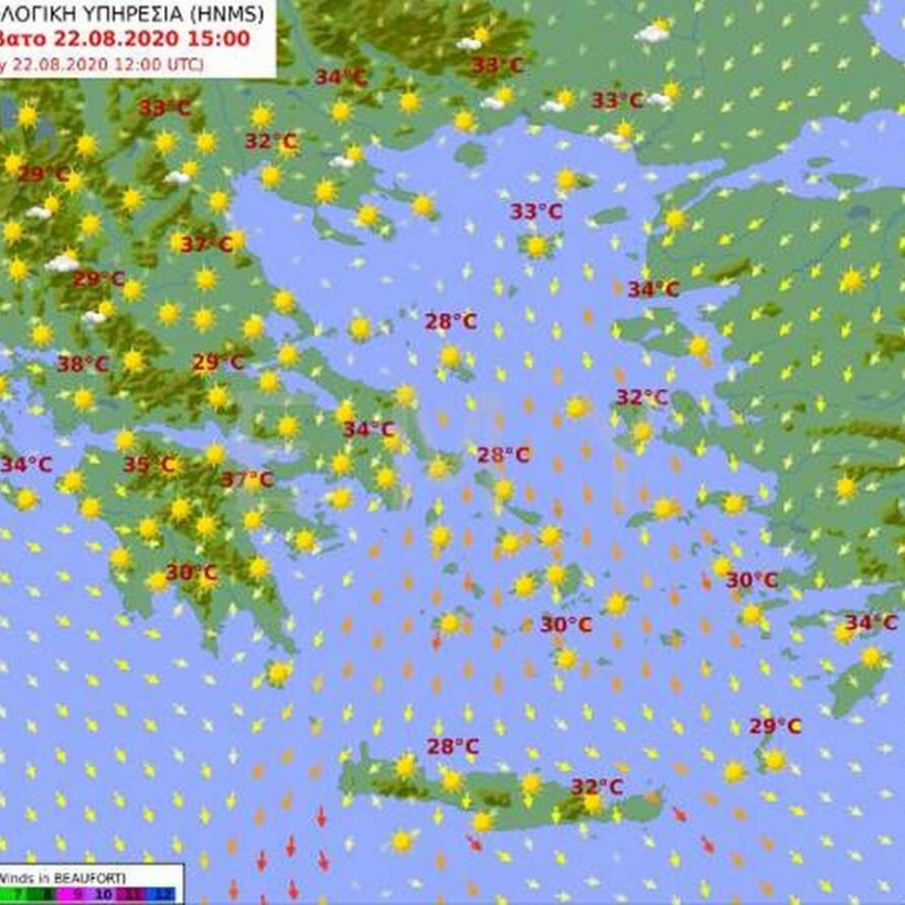 Θερμοκρασία: Από 22 έως 30 και στη νότια Κρήτη έως 33 βαθμούς Κελσίου.