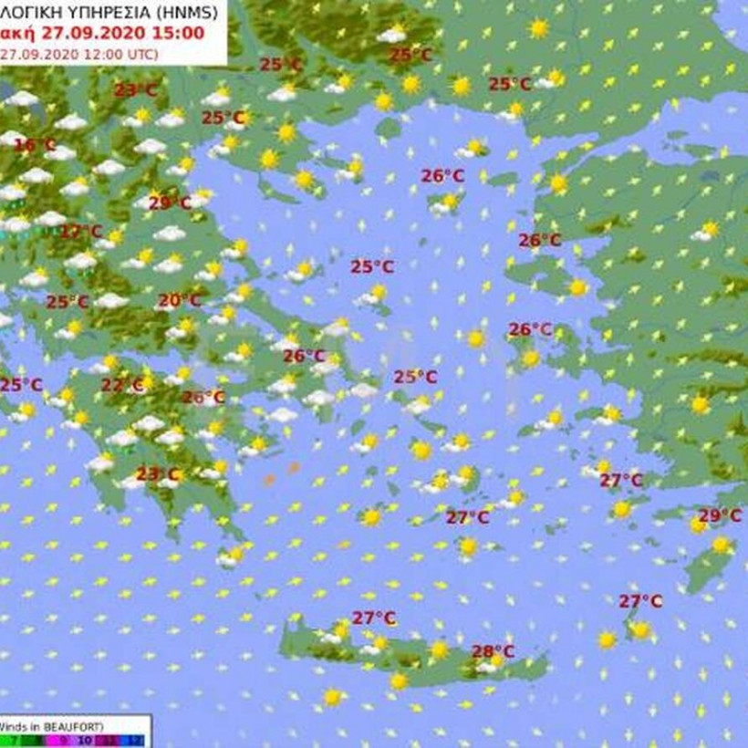 Θερμοκρασία: Από 21 έως 29 και στη βόρεια Κρήτη έως 33 βαθμούς Κελσίου.