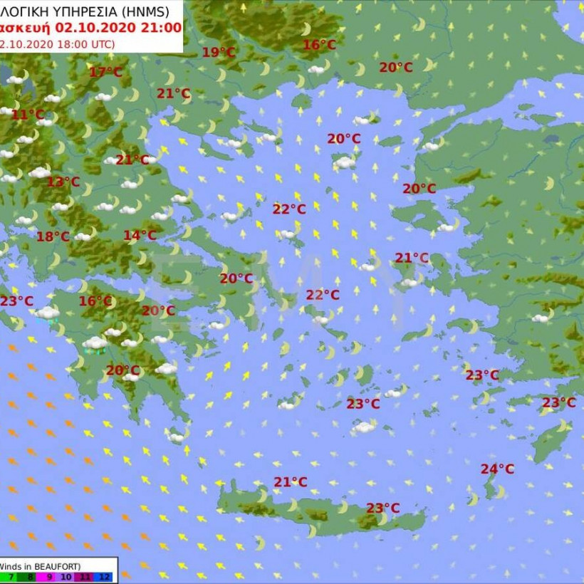 Οι άνεμοι θα πνέουν νότιοι νοτιοανατολικοί 4 με 6, στο Ιόνιο τοπικά 7 μποφόρ και μόνο στα Δωδεκάνησα θα πνέουν δυτικοί βορειοδυτικοί 3 με 4 μποφόρ.