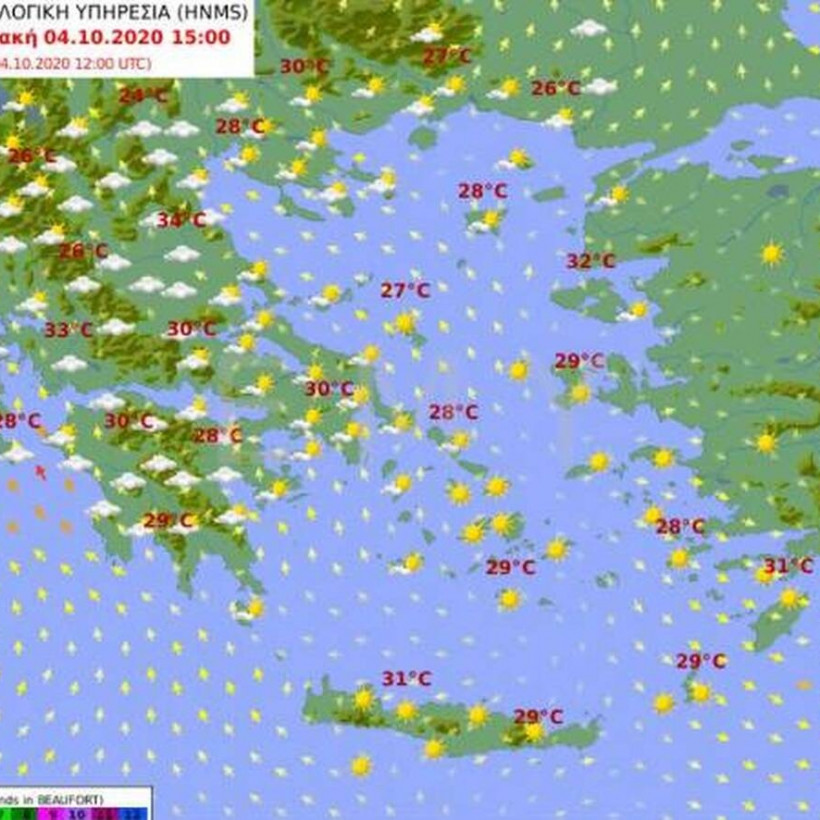 Θερμοκρασία: Από 12 έως 29 βαθμούς Κελσίου. Στη δυτική Μακεδονία 4 με 6 βαθμούς χαμηλότερη.