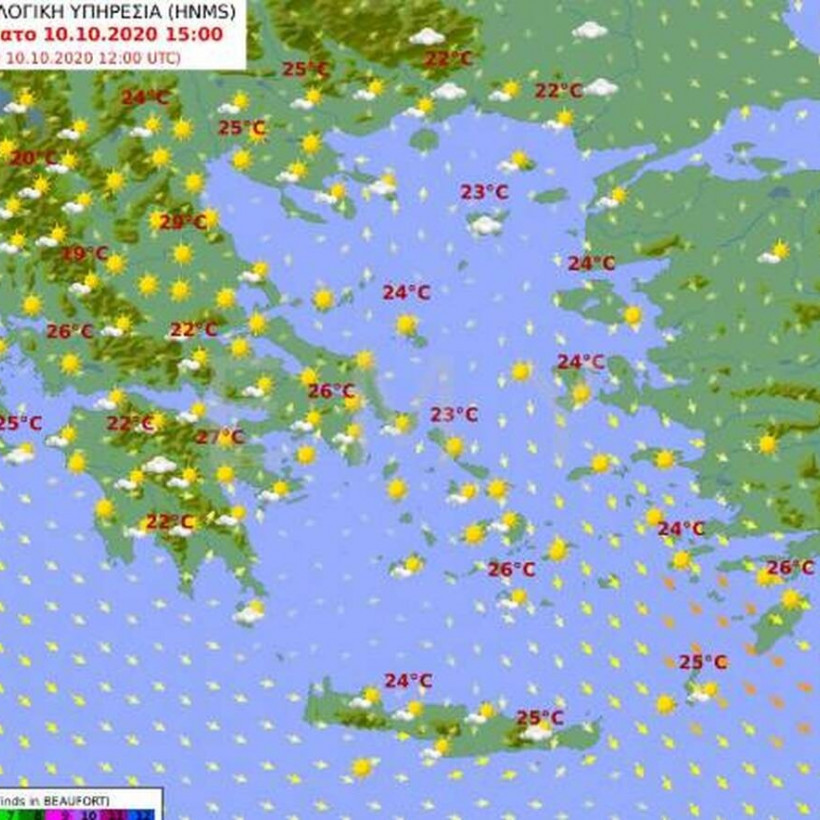 Θερμοκρασία: Από 14 έως 26 βαθμούς Κελσίου. Στην Ήπειρο κατά τόπους 4 με 6 βαθμούς χαμηλότερη.