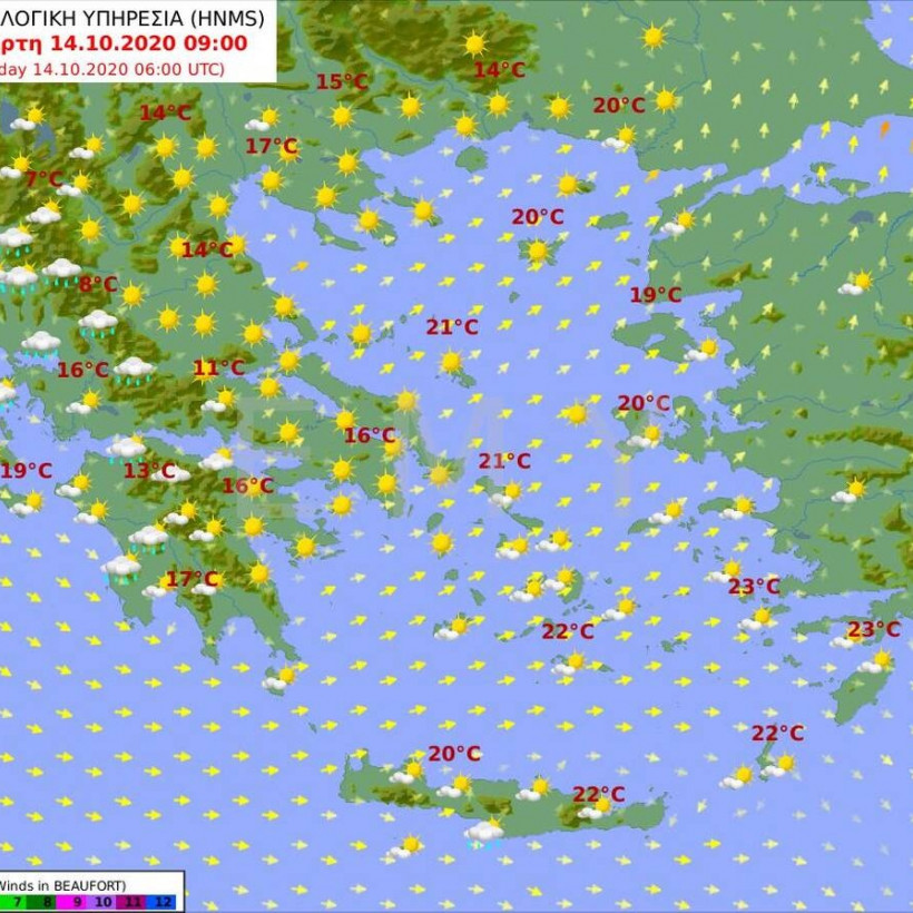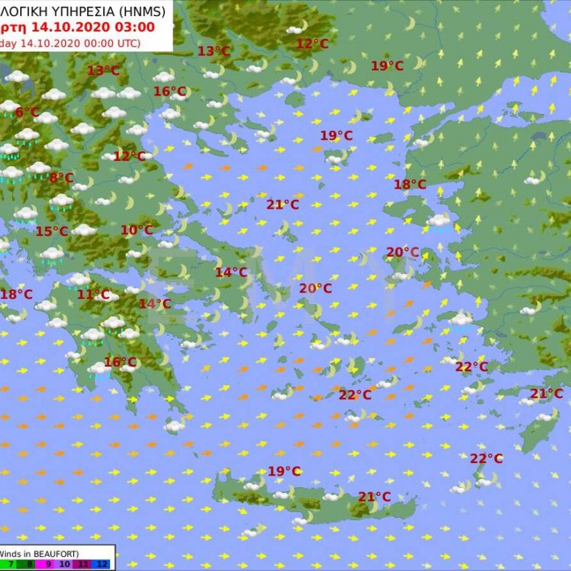Αναλυτικά η πρόγνωση του καιρού από την Εθνική Μετεωρολογική Υπηρεσία για την Τρίτη 13 Οκτωβρίου
