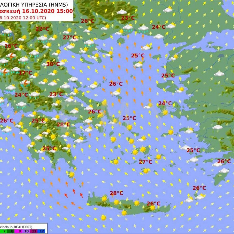 Θερμοκρασία: Από 18 έως 26 και στην Κρήτη έως 29 βαθμούς Κελσίου.