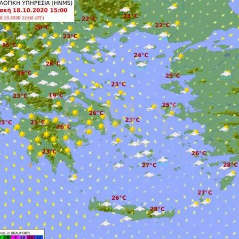Θερμοκρασία: Από 18 έως 26 και στην Κρήτη έως 29 βαθμούς Κελσίου.