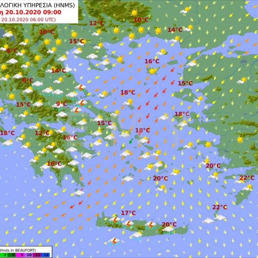 - Από νωρίς το πρωί της Τρίτης (20-10-2020) η Κρήτη και πιθανώς πρόσκαιρα τα νότια τμήματα της Πελοποννήσου.