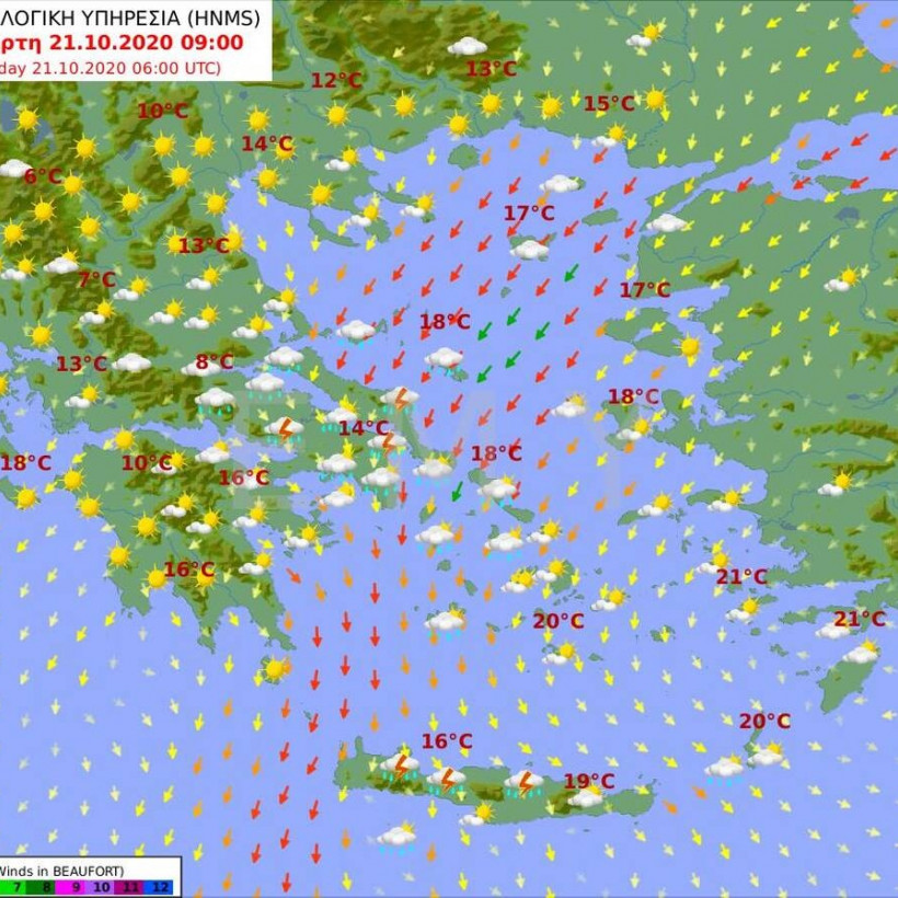 Αναλυτικά η πρόγνωση του καιρού από την Εθνική Μετεωρολογική Υπηρεσία για την Τρίτη 20 Οκτωβρίου